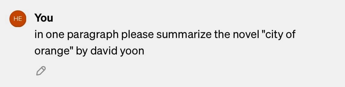 To find out, I "asked" ChatGPT to summarize my novel City of Orange. (Putting "asked" in quotes because I hate anthropomorphizing AI. Gives it undeserved credibility. Then again, we humans anthropomorphize goddamn every little thing around us, probably because they love it so much.)